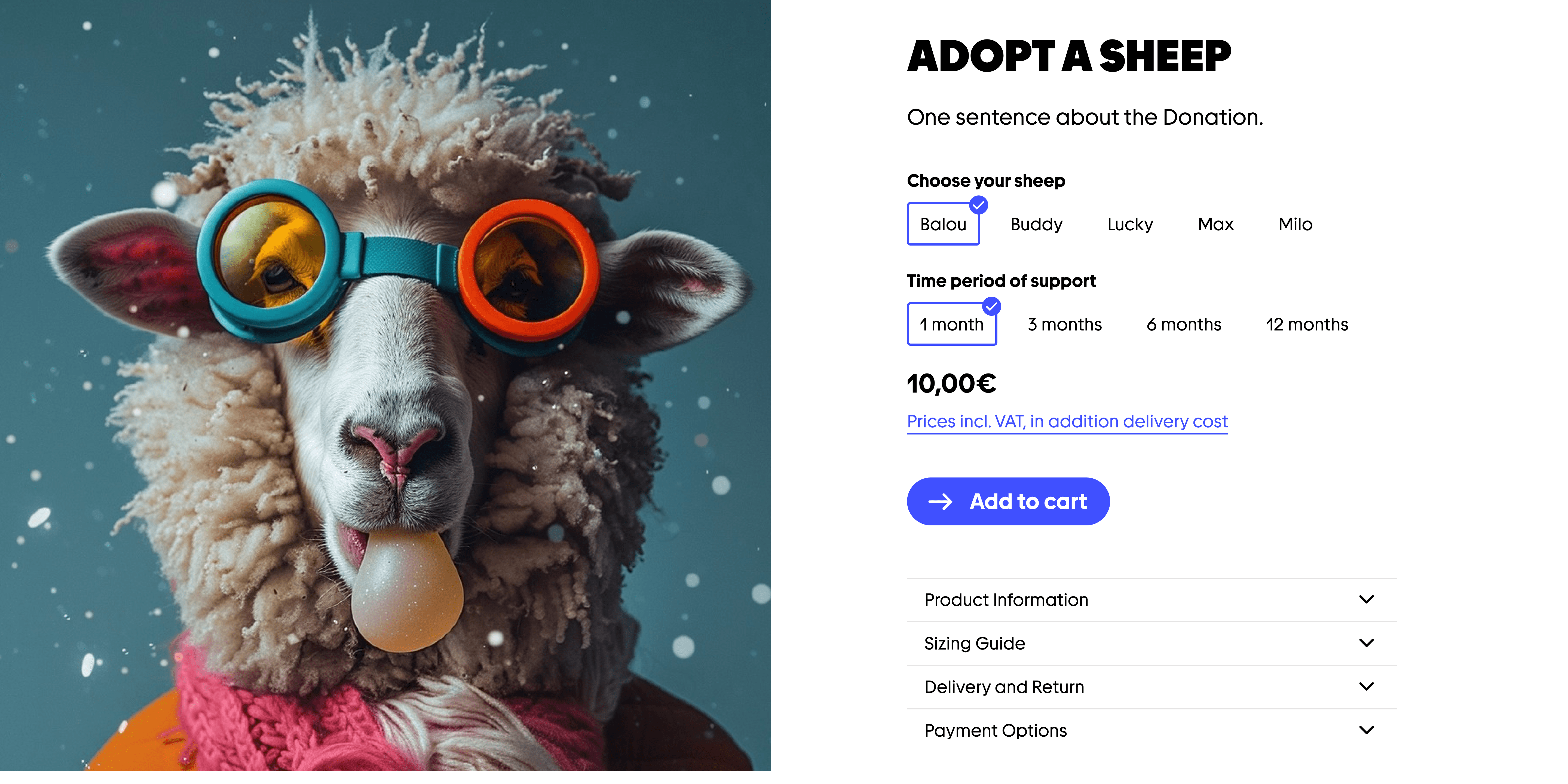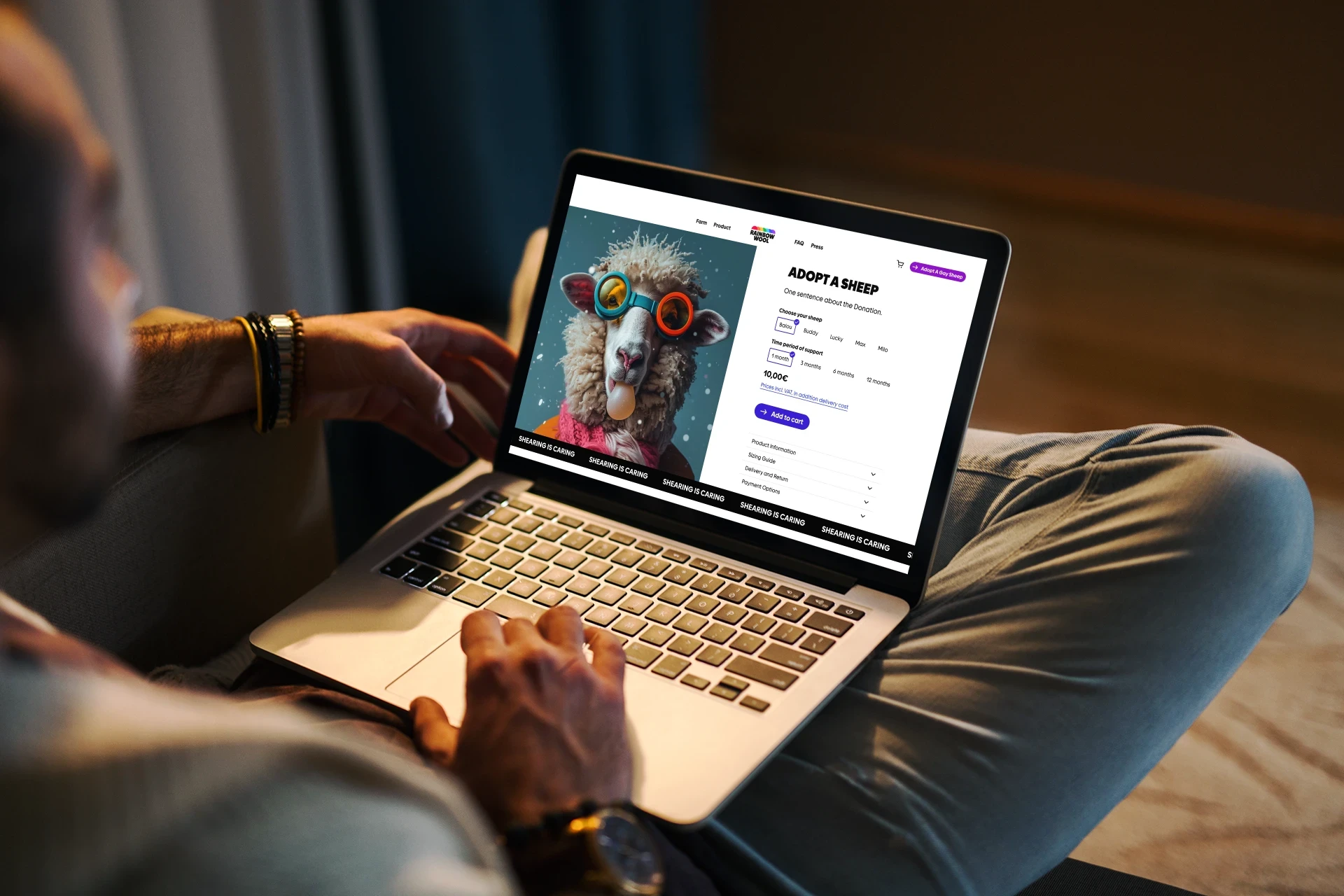 We led with the sheep by placing their names, personalities and story before a single product grid. Customers could choose a specific sheep to support with their purchase, turning a transaction into a relationship.